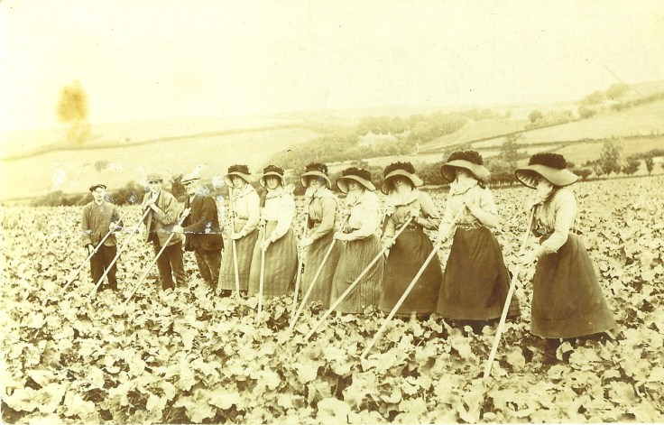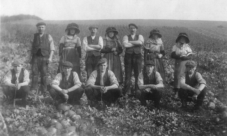 Workers hoeing at Kilham (Photograph – Alison Hall, Berwick)